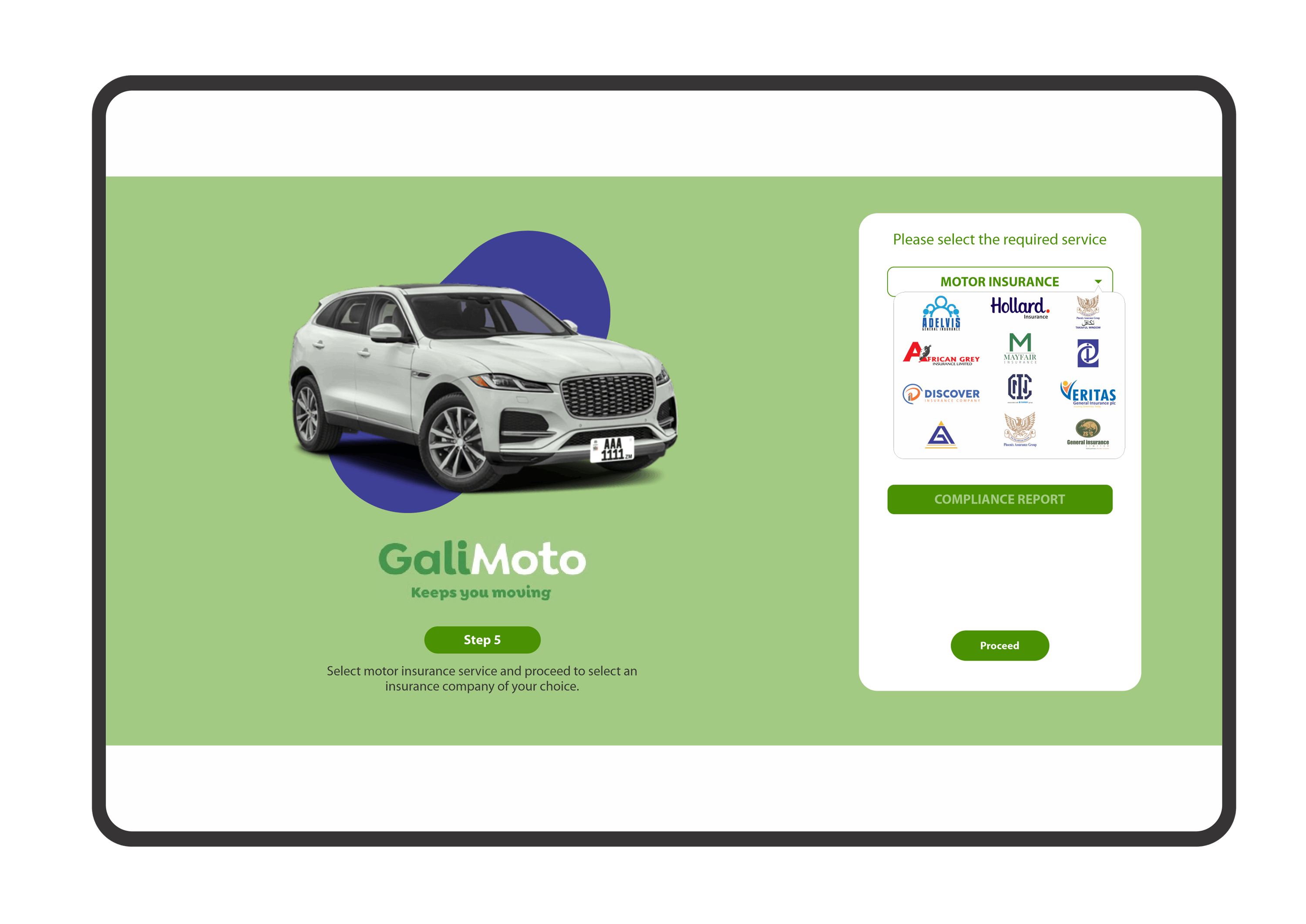 Follow the steps below on how to buy motor insurance using the GaliMoto App.