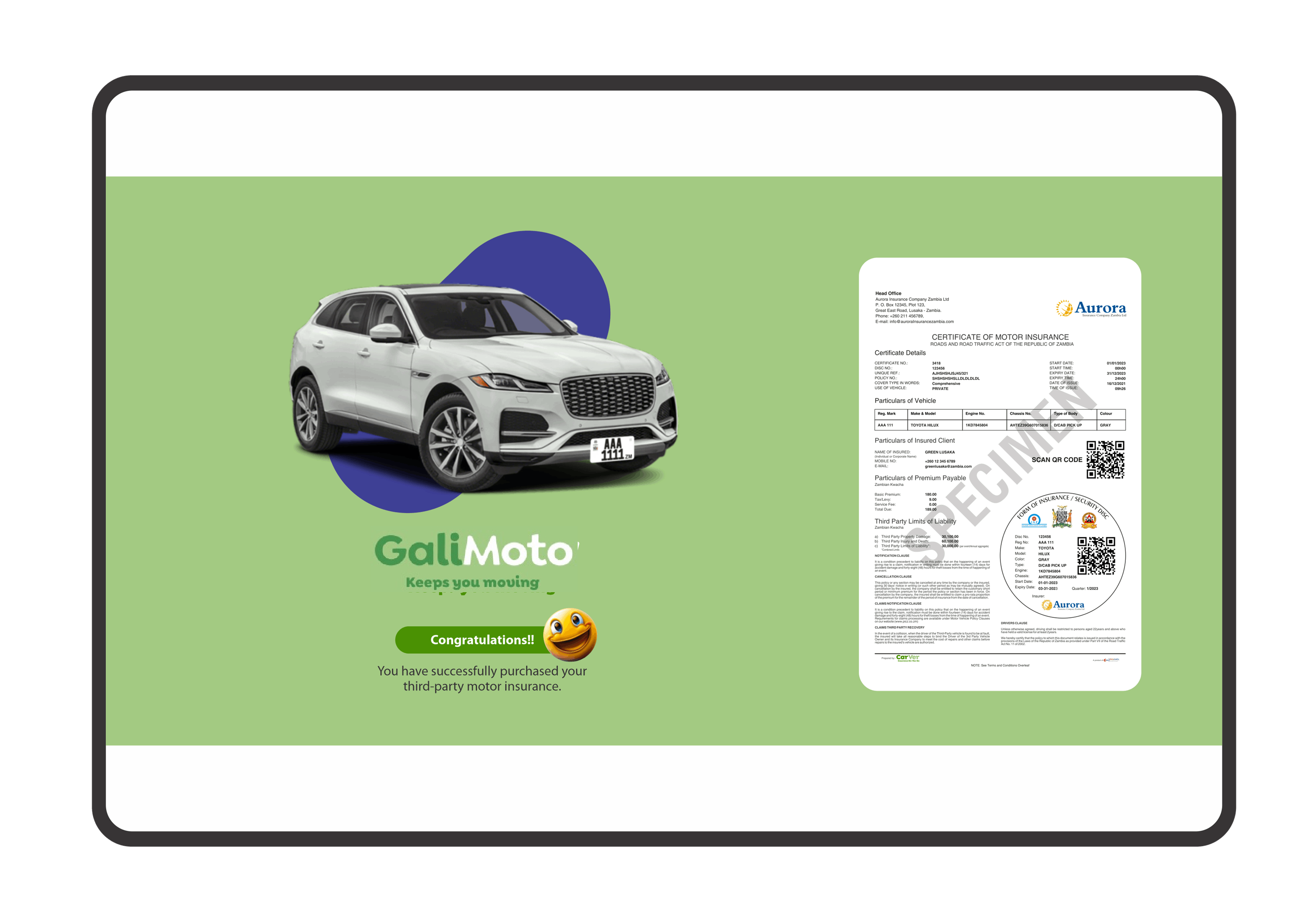 GaliMoto is operated by Datamatix Technology in partnership with Contractsure Services Limited, who are an insurance brokering company licensed by the Pensions and Insurance Authority (“PIA”) in Zambia.